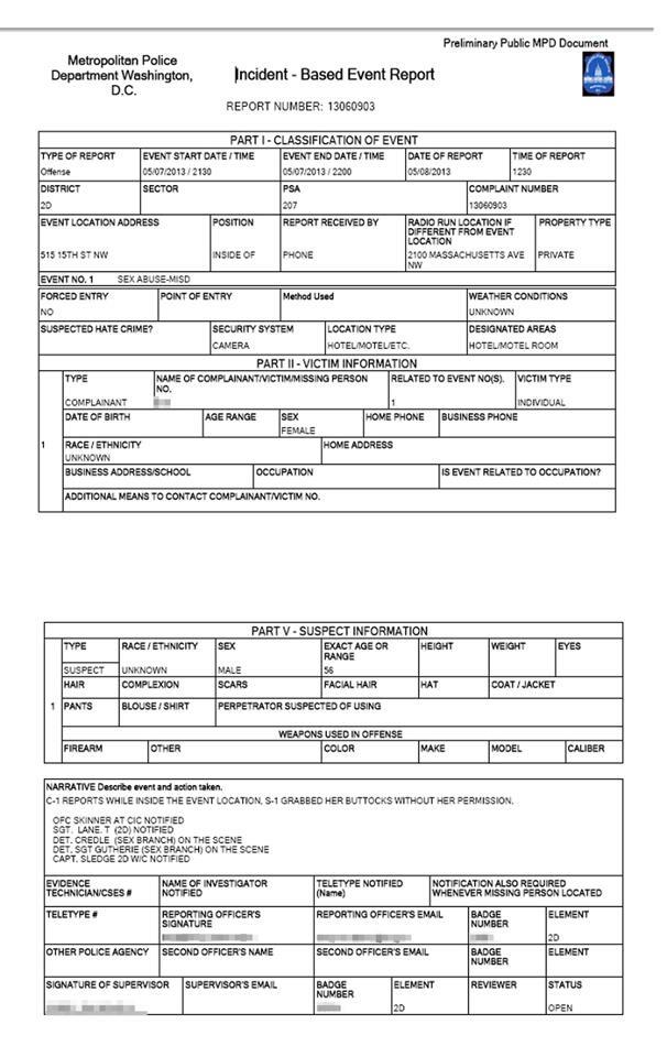 참고 : 워싱턴 DC 경찰이 공개한 사건 접수 서류