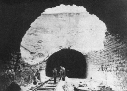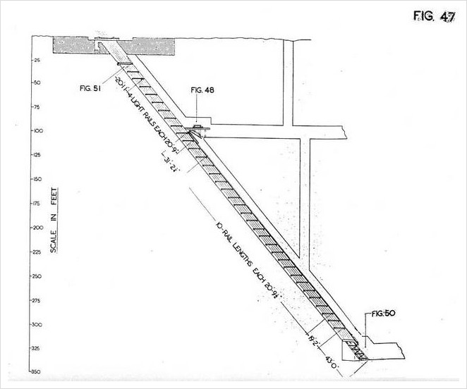 ▲ 로켓탄 수송용 터널과 V3 로켓 발사 기지의 단면도.
