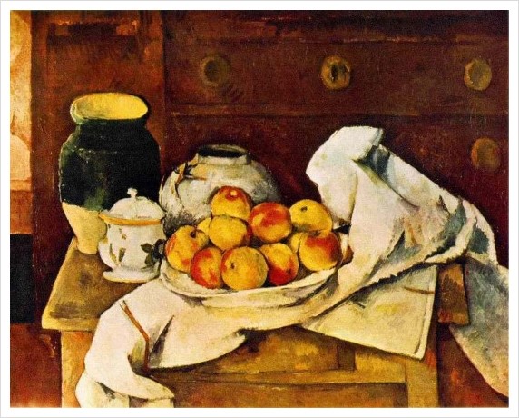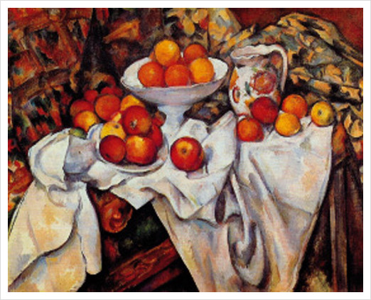 세잔은 사물의 본질을 찾고자 했고, 색채 또한 과일의 색조가 서로 보색을 이루도록