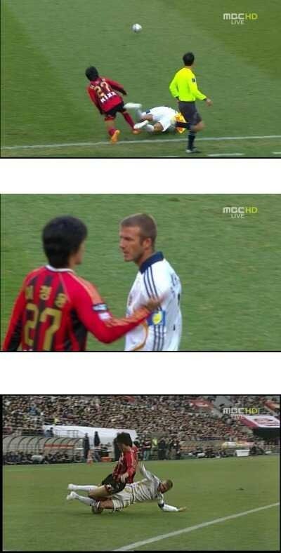 그리고 친선경기인 이때도 베컴한테 살인태클 날리고 베컴도 이청용한테 살인태클 날리고