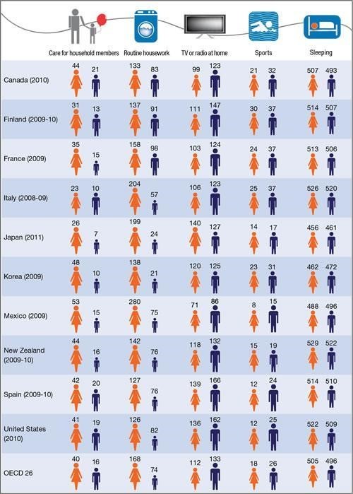 따라서 저 도표의 올바른 해석은 남자들이 직장에서 혹사당하는 동안, 여자들은 집안일 대강 해치우고