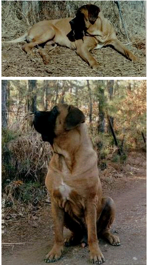 영국의 마스티프에게 고대 로마시대 사자와도 겨뤘던 그 용기와 힘,골격을 이어받았고