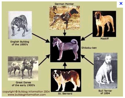 ▶ 도사견 개량에 들어간 견종 가운데 일본토종견을 베이스로 6가지 견종이 교잡되었다.