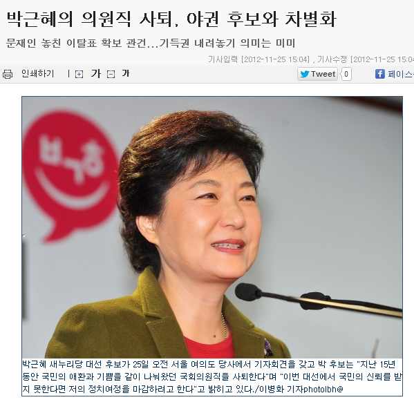 박근혜 "이번 대선전 국회의원직 사퇴합니다. 이번 대선 지면 정계 은퇴합니다. 저의 모든것을 걸겠습니다."