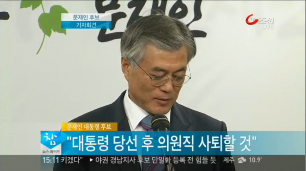 문재인 "이번 대선전 국희의원직 사퇴 안합니다. 대통령 당선되면 사퇴할게요. 대통령 당선 안되면 사퇴 안할거에요. 데~헷"