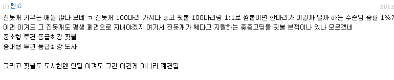 ㄴ대형 핏불과 소형 도사와의 경기 승률은 50:50으로 보기도하더라.