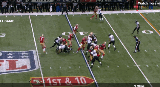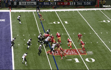 근데 한번더 자세히 봐봐, 볼티모어 수비진에서 뭔일이 벌어지지?
