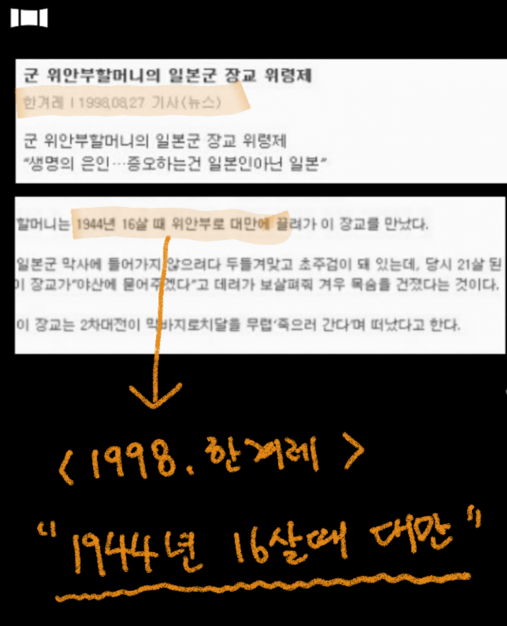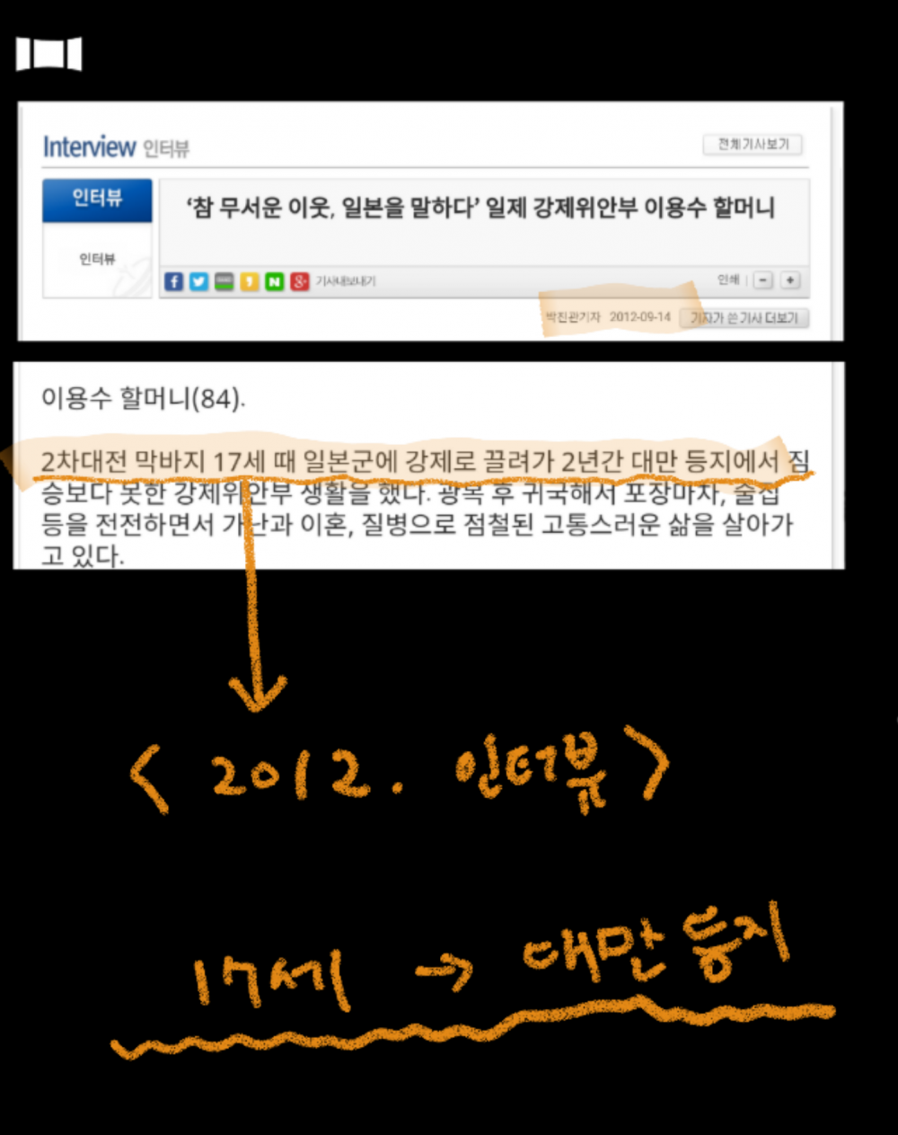 이용수할머니가 처음으로 나온 기사를 보자!