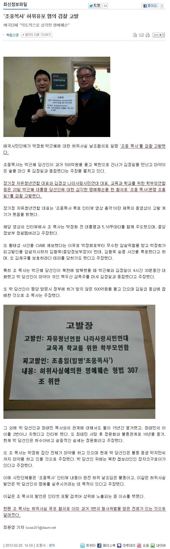 조웅목사는 이미 고발 되었고, 조웅목사의 동영상을 퍼 나르는것도 범죄에 속하며 법의 심판을 받게 된다.