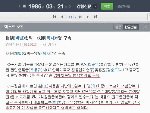 조웅목사의 사기전과 기록
