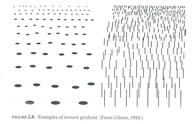 거칠고 명료한 부분은 가까이, 촘촘한 부분은 멀리 ..점진적으로 변하는 거리의 증가에 대한 느낌을 주는 '결기울기'(texture gradient)'단서