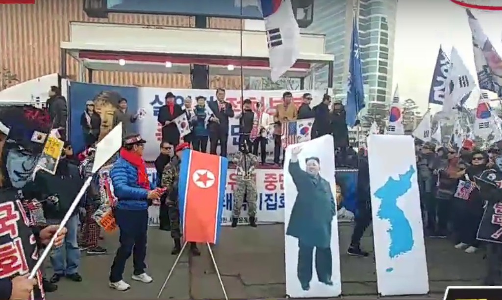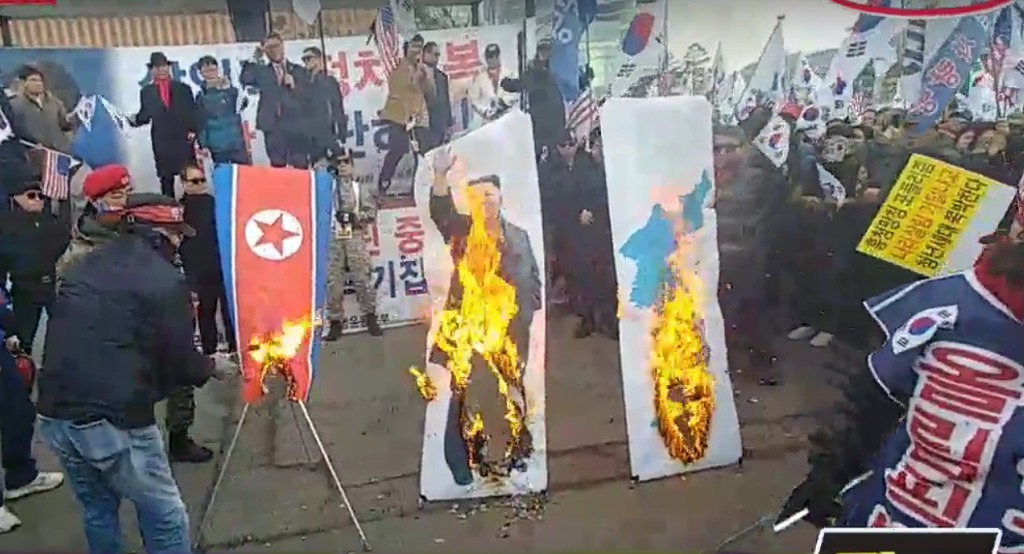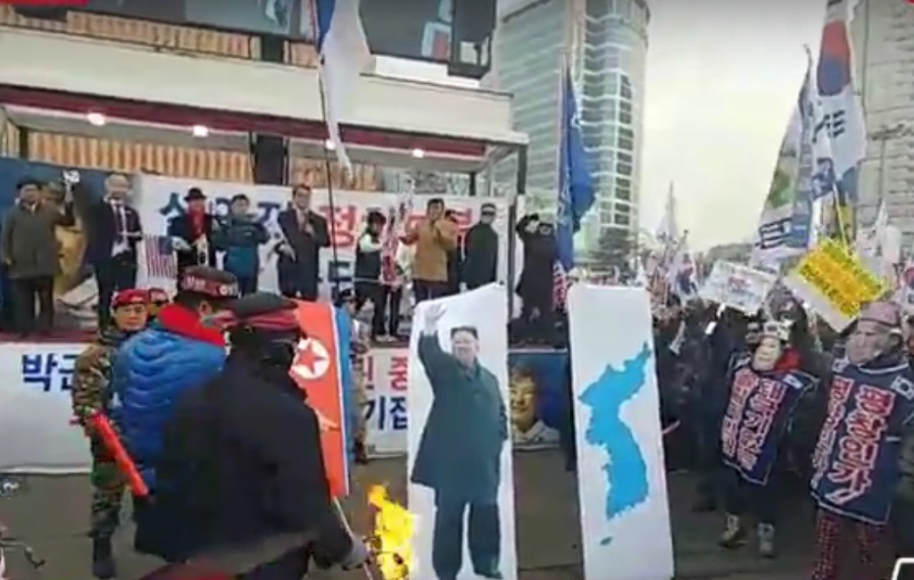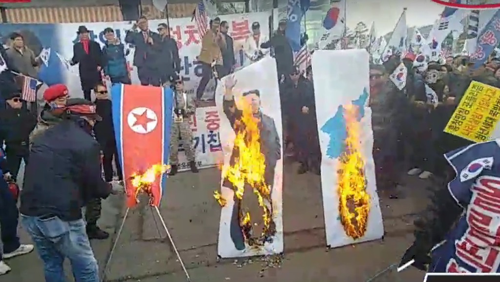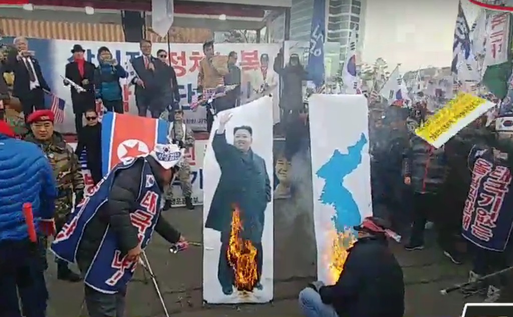 태극기 애국시민들이 화났다! 북한 돼지,인공기 한반도기 태워 없앴다!