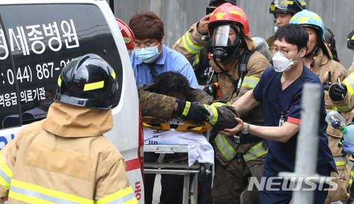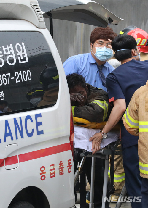 저 위 남자 소방관들 힘들어 하는 모습좀 봐라