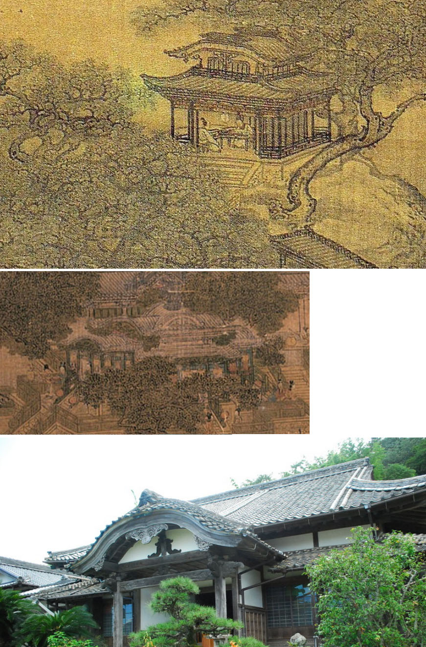 일본에 이런 아치형 지붕을 당파풍(당나라 지붕)이라고 부른다.