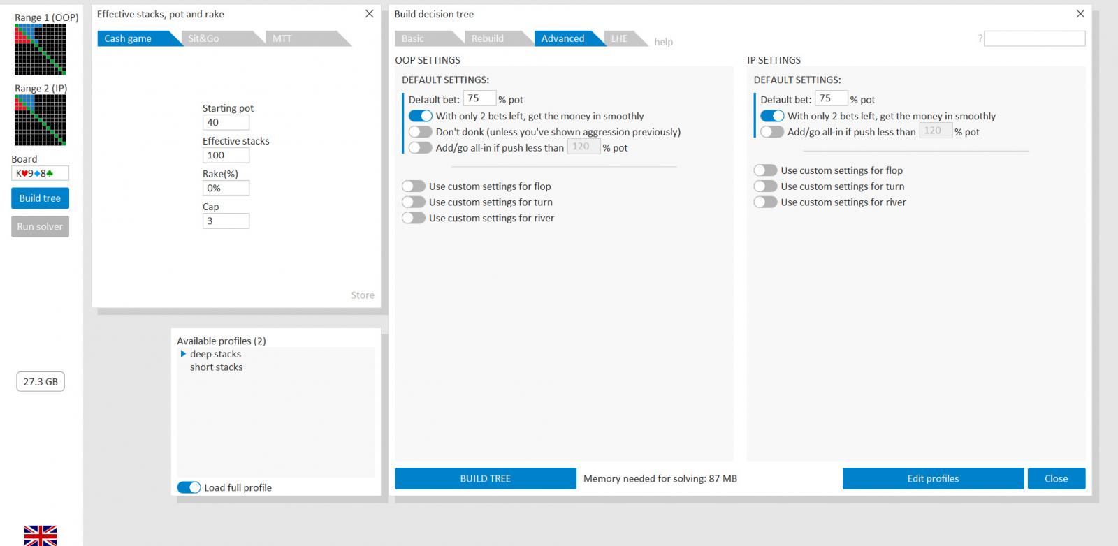 1. OOP, IP 핸드 레인지를 설정해준다