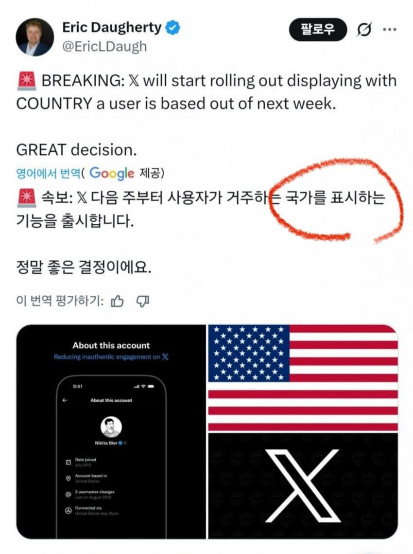 X (트위터)에서 다음주에 국가표시할 때 .....