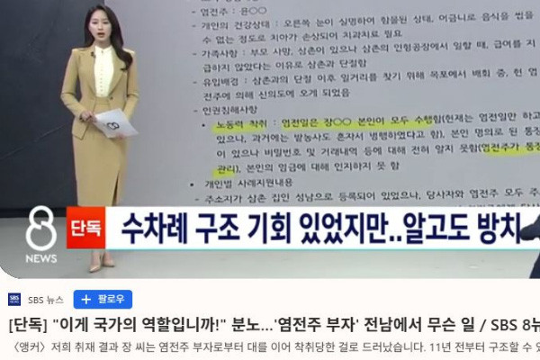 내용은 부자가 대를 이어 가엾은 이방인을 전라도에 인신감금해 노동착취했다는 뉴스 보도. 그리고 보도는 2014년 누가 지시했다기보다는 사회적으로 염전노예 사건이 부각돼 수사가 있었다는 전라도 노예 히스토리를 간략화한다.