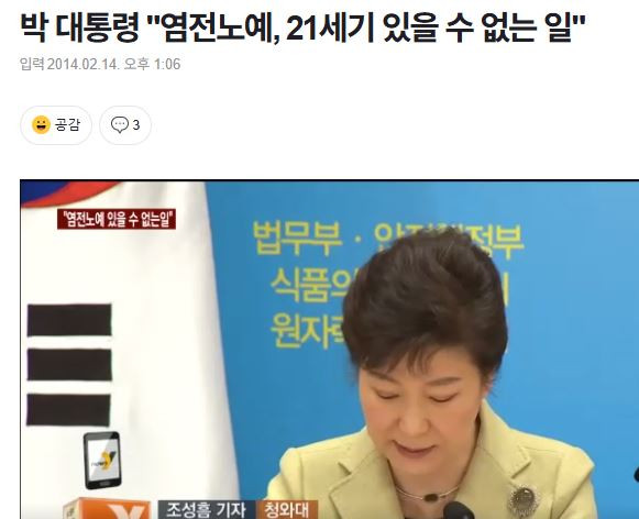 3. 2014년 노예해방선언을 하시며 오직 국민위해 법의 잣대를 신의 저울 앞에서 부끄러움 없이 외치신 박근혜 대통령 때도 실패한 노예해방이 지금 전라도당 집권기에 해결될 가능성은 0%