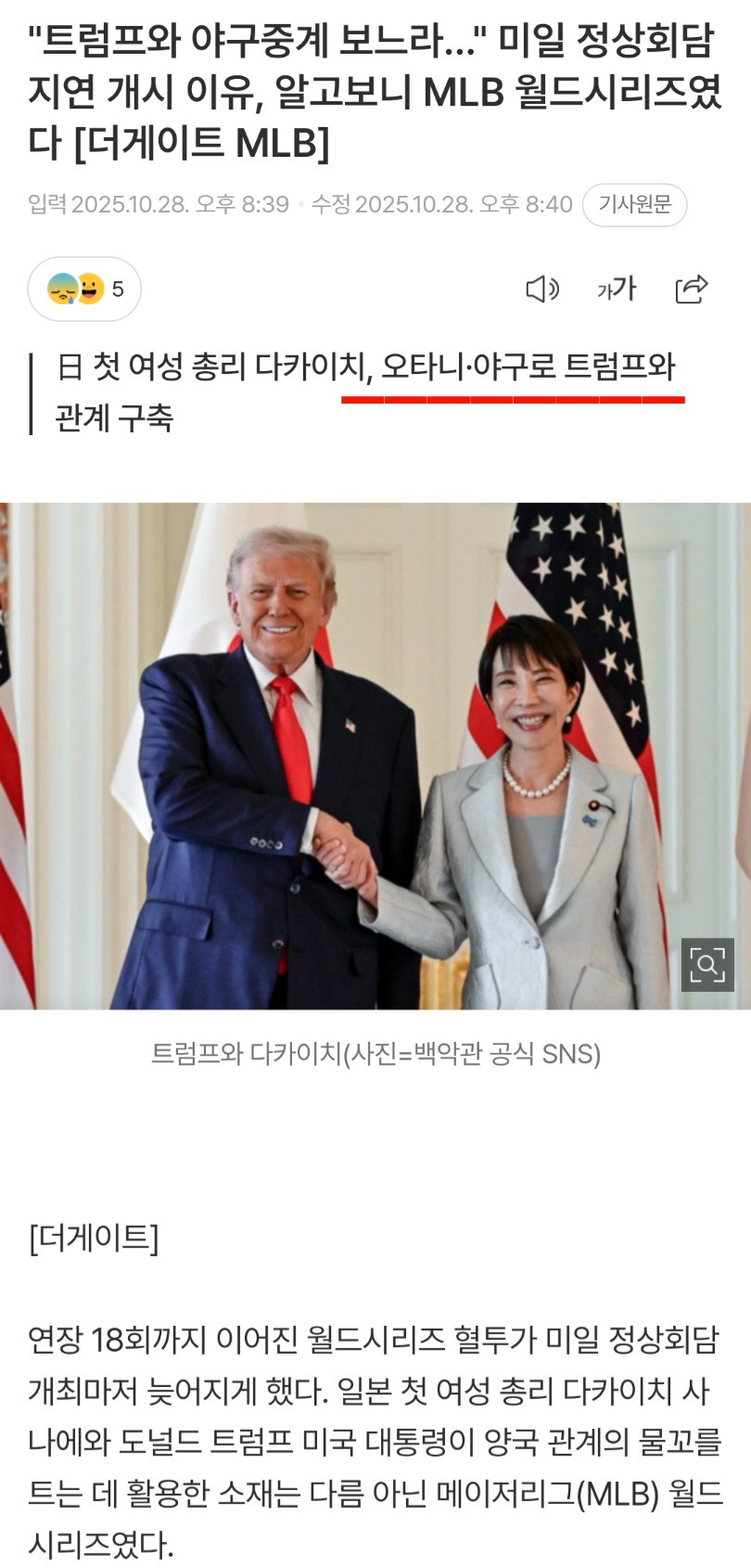 트럼프와 다카이치 총리가 집무실에서 TV로