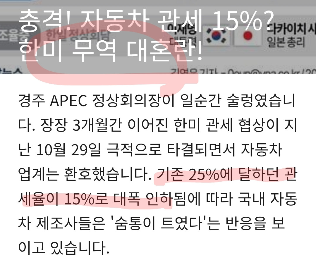 (한줄요약) 사기꾼 찢탓에 자동차 관세는 여전히 25%
