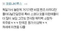 김치 ㅄ들은 수입차가 20프로 점유율 허세에 미친 나라 ㅋㅋㅋㅋㅋ