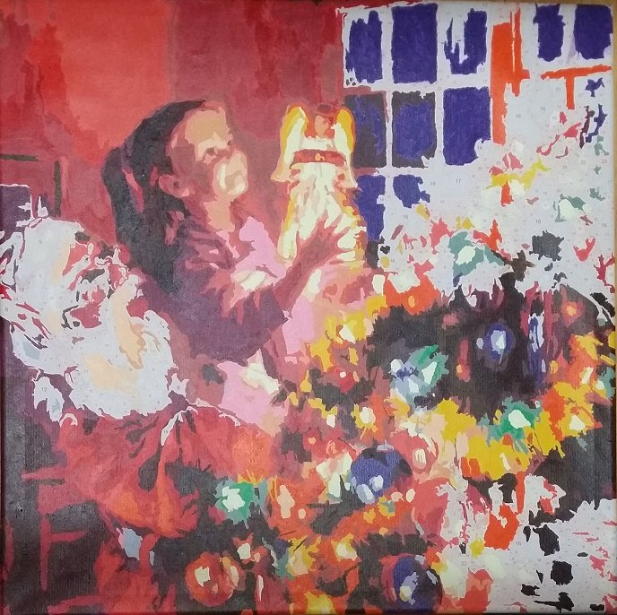 겨울왕국이랑, 천사 장식물을 든 소녀를 안고 있는 산타