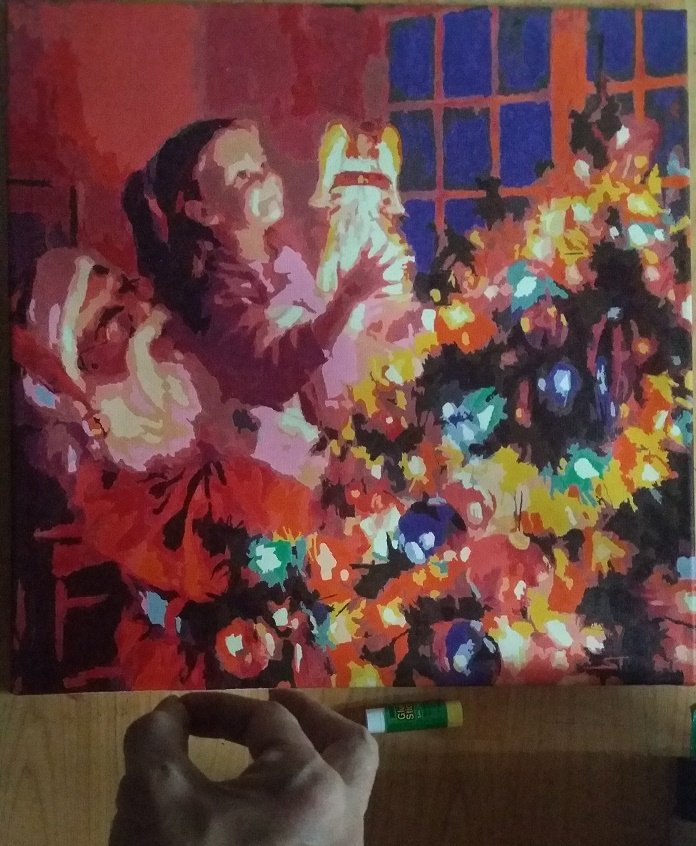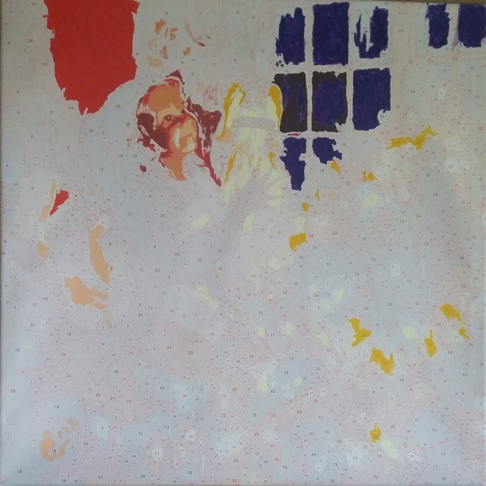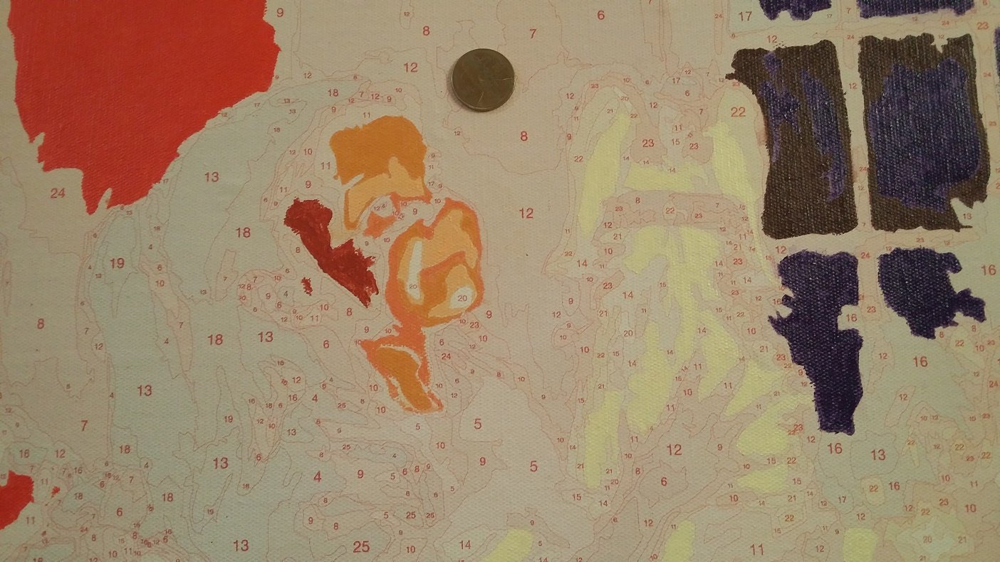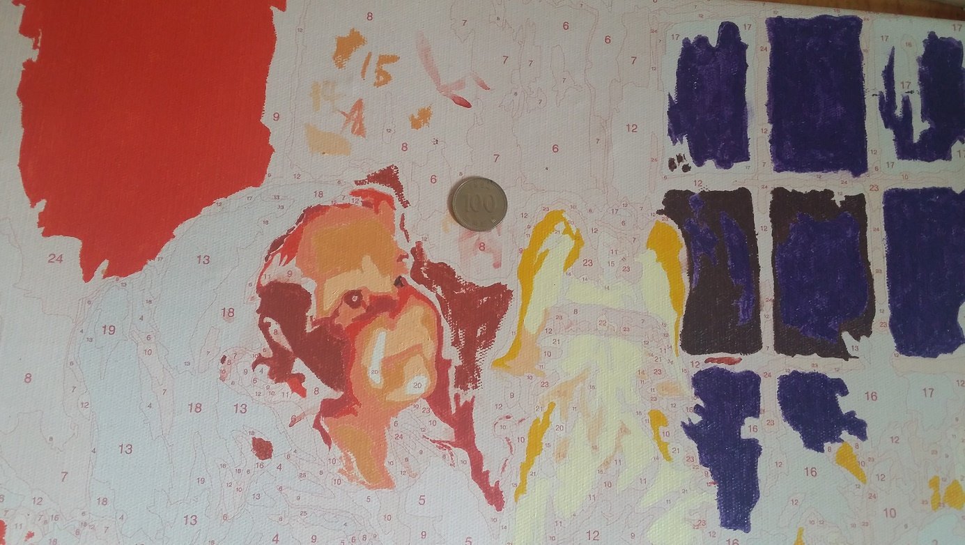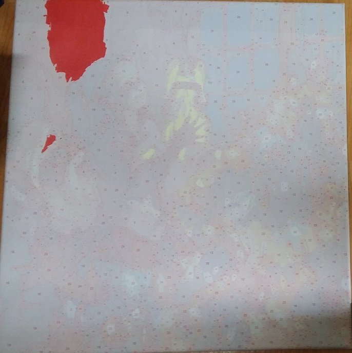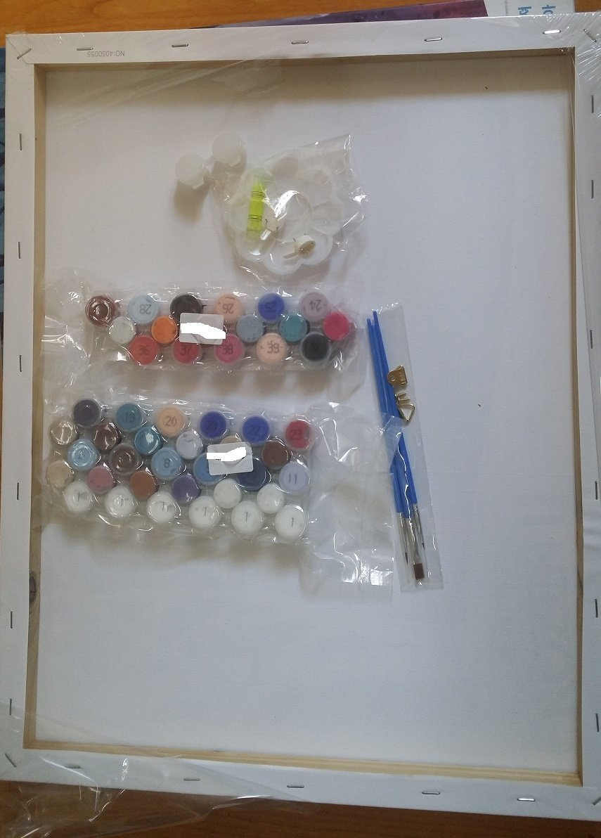 저 칸에 번호가 써져 있고 그 번호에 맞는 물감을 칠하면 된다. 물감이랑 붙이랑 다 들어 있다.