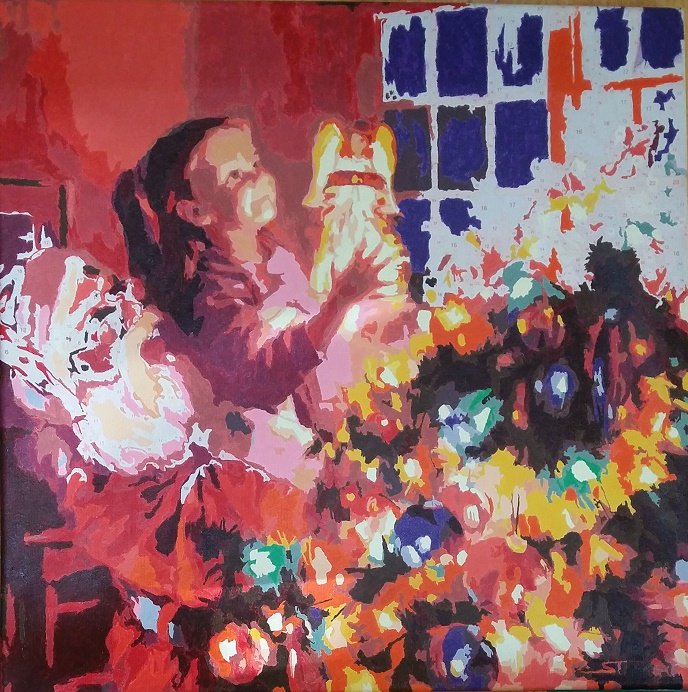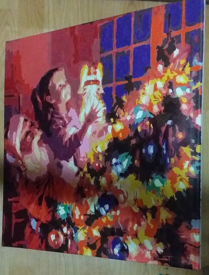 천사 장식물을 든 소녀를 안고 있는 산타 먼저 그려보자!