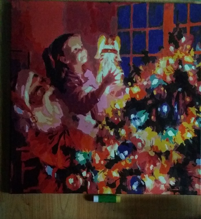 전체적으로 칠하지 않고 일부로 사람얼굴이나 사물을 하나하나 완성해 나가면서 칠했다