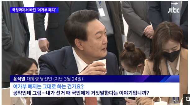 여가부 폐지를 대통령 공약으로 삼던 윤쩝쩝. 20대남들 표뜯어놓고