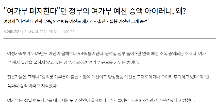 여가부 폐지하라고 20-30대가 뽑아줬더니 , 오히려 증액한 윤쩝쩝