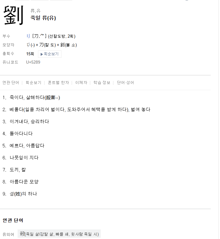 그런데 유(劉) 한자를 보면,