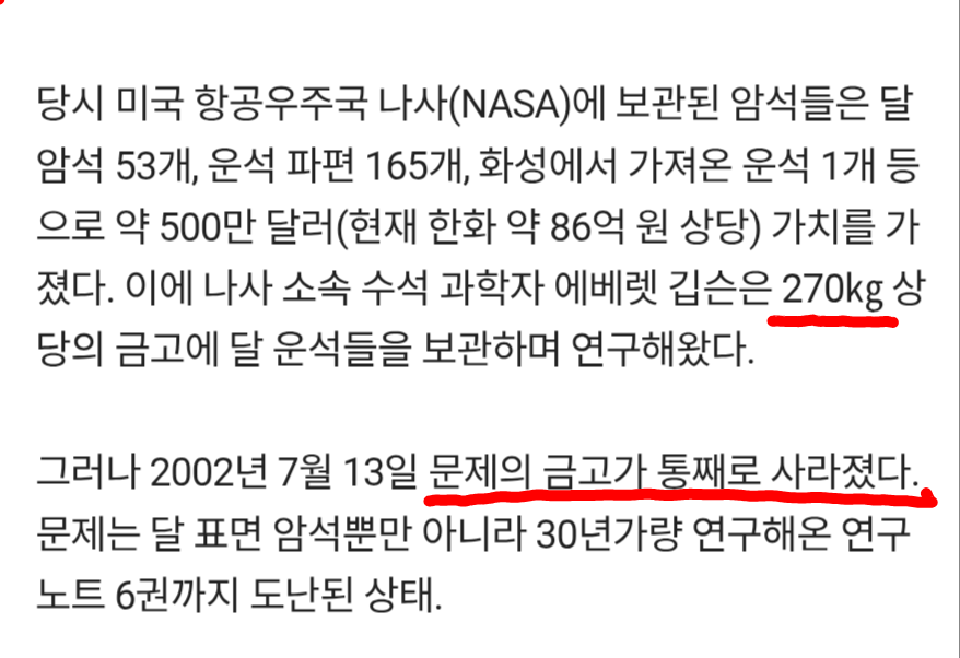 나사 소유의 월석들도 사라졌댄당