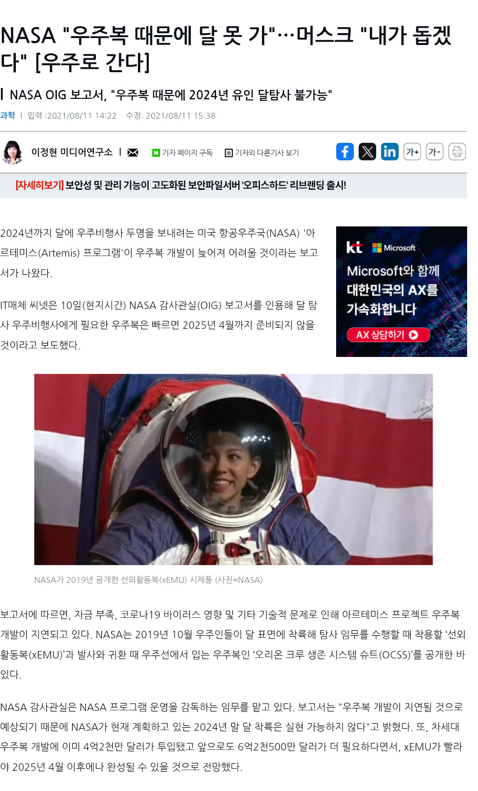 우주복 만드는 기술도 분실했다는 NASA