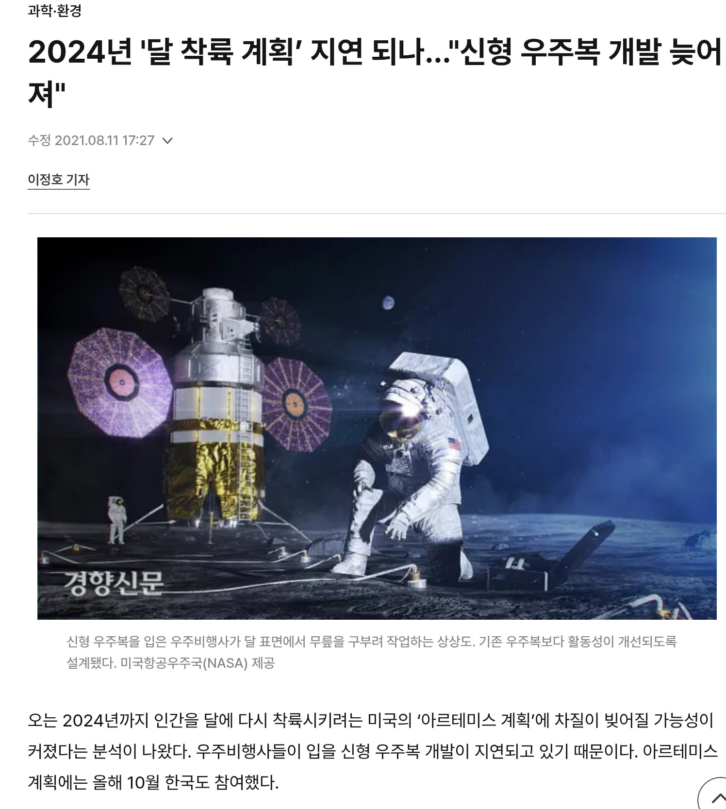 아르테미스 계획이 2017년도에 시작됐는데