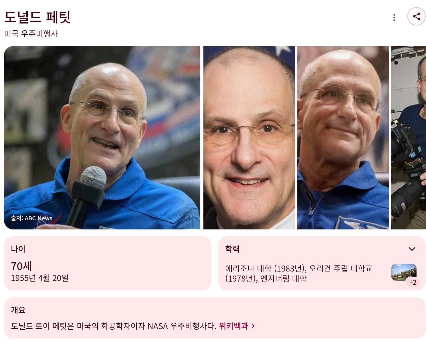 찾아보니까 실제로 NASA 우주비행사 맞네
