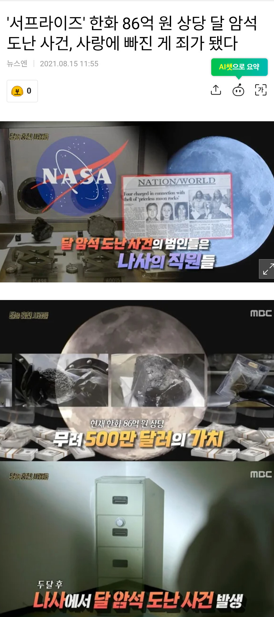 게다가 달에서 가져온 월석들을 성분 분석하고 연구한 자료도 함께 도둑맞았는거임 (연구노트 6권)