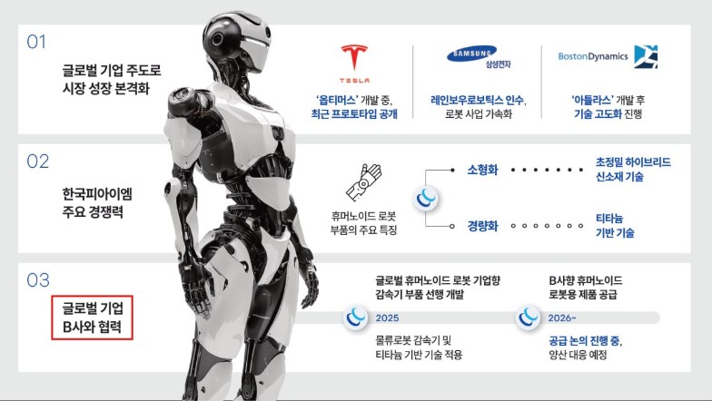 이어 "고객사와 비밀유지계약(NDA)을 체결해 상세히 밝힐 수는 없다"면서도 "휴머노이드 부품 소재 개발은 완료한 상태이며 경량화 소재에 대한 물성 테스트 절차를 진행하고 있다"고 강조했다.