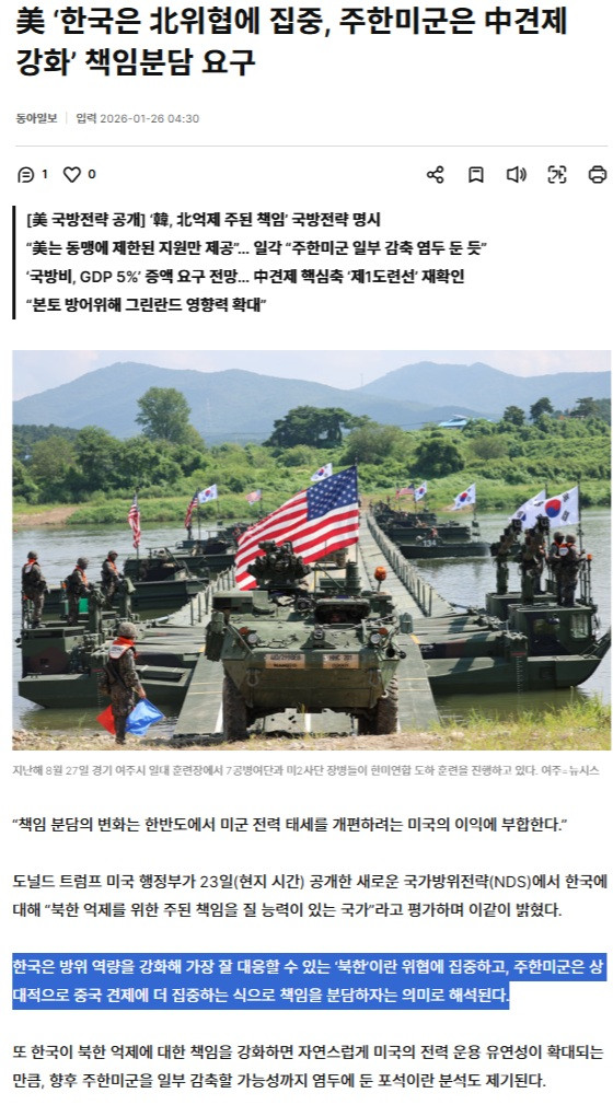 (한줄요약) 드디어 좌빨 소원대로 미군은 한국 분쟁에 개입안하게됨. 미국 없는 자주국방 시대 도래.