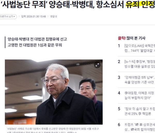 3. 이런 이유로 조리돌림한 양승태가 무죄 판결을 얻어내자 전라도 본진이며 전라도 개판사 및 검경이 자중지랄스럽게도 항소 끝에 무죄가 아니라 유죄라는 기록만은 남겨 이 나라 조선 개돼지들이 박근혜 정권이자 우익을 상징하는 시절의 모든 것을 악이라 치부할 수 있도록 명분을 남김