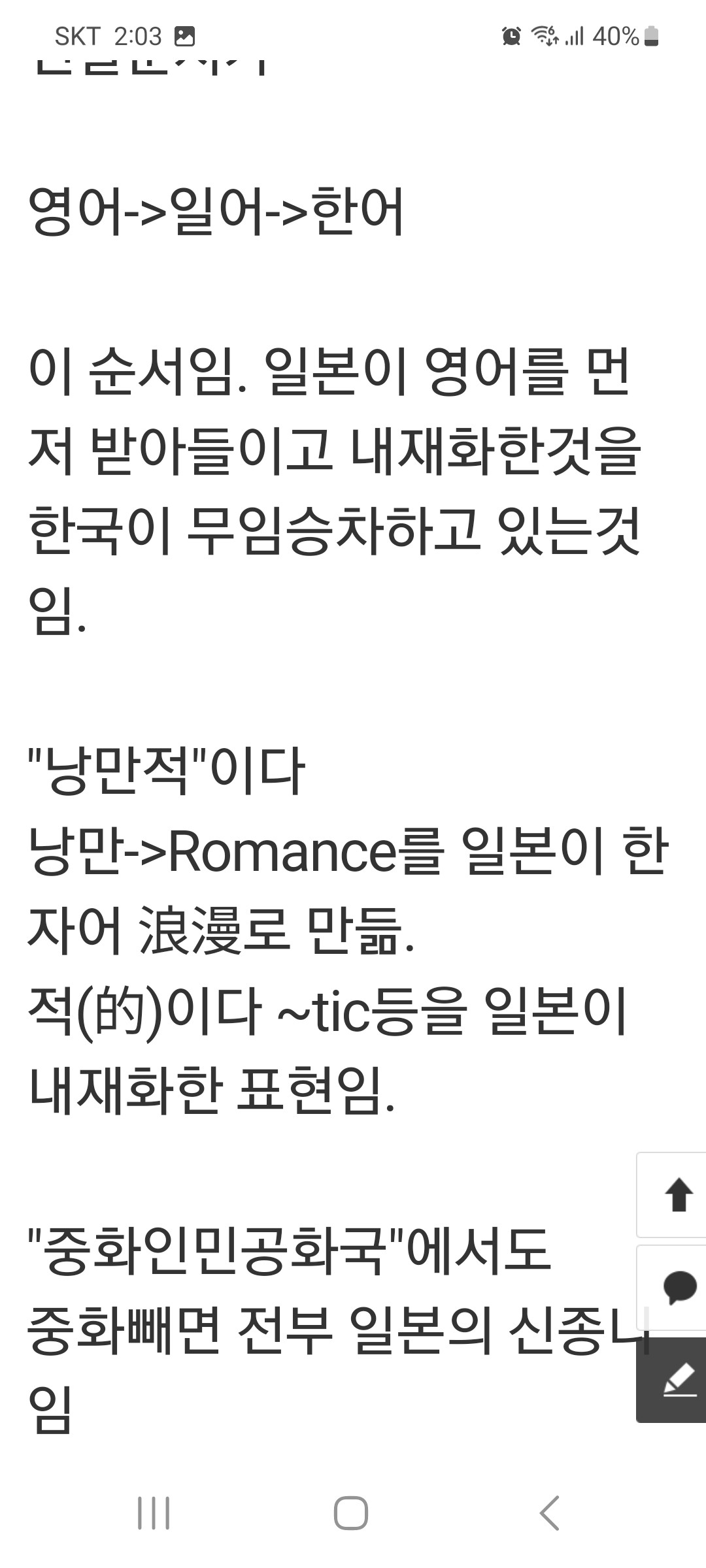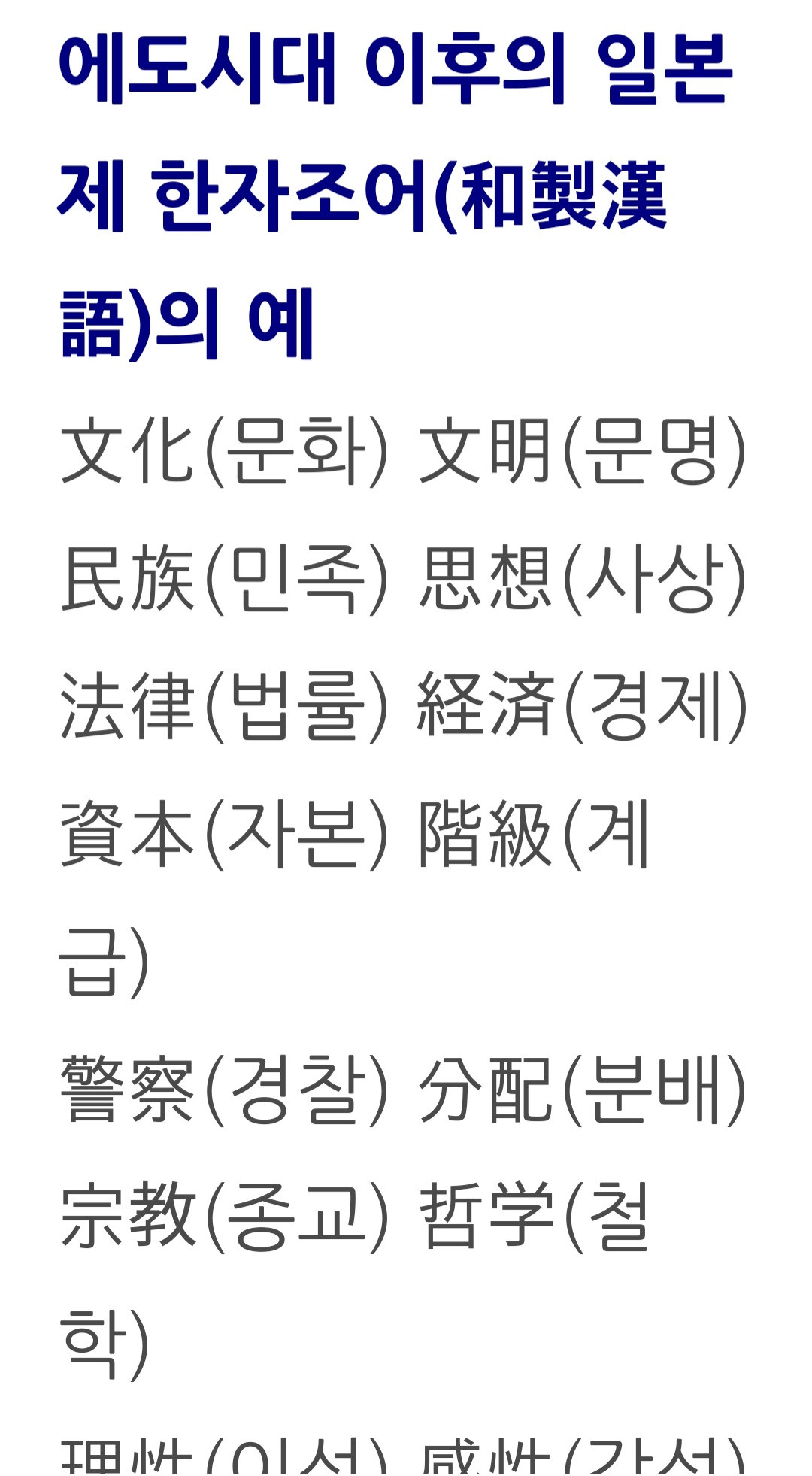 지금 사용하는 한자어와 개념80~90%가 서양발생의 개념이며 그 대부분이 일본의 번역한 작품이고 일부가 중국의 근대화 노력이였다