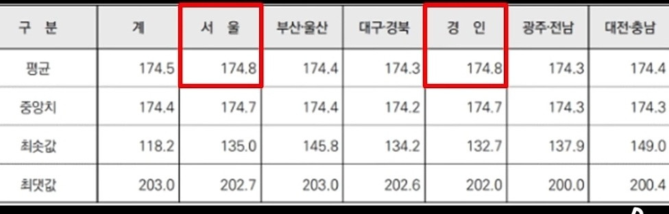 20대 기준 평균 키가