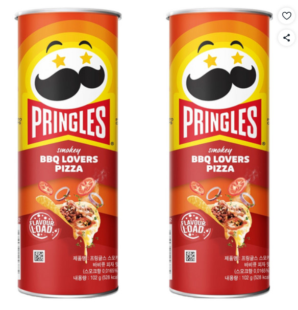3,330원 프링글스 감자스낵 스모키 바비큐 피자맛, 102g, 2개