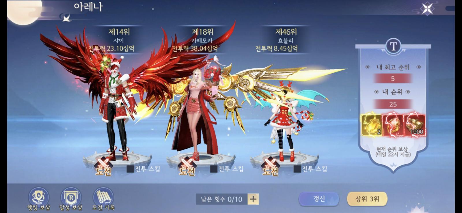 여기 상위 3명의 전투력도 보여드리겠습니다.
