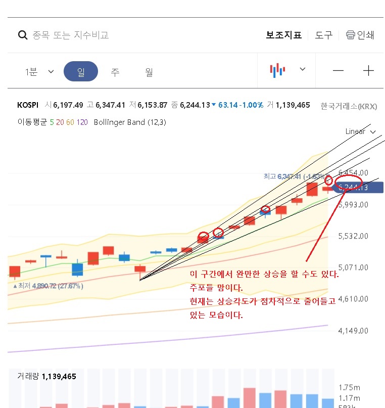 주포들은 일봉이나 주봉, 월봉으로 추세선을 만들어서