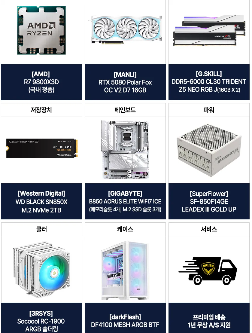 [11번]9800X3D RTX5080 Polar fox G.skill CL30 SN850X 2tb(4,099,830원)