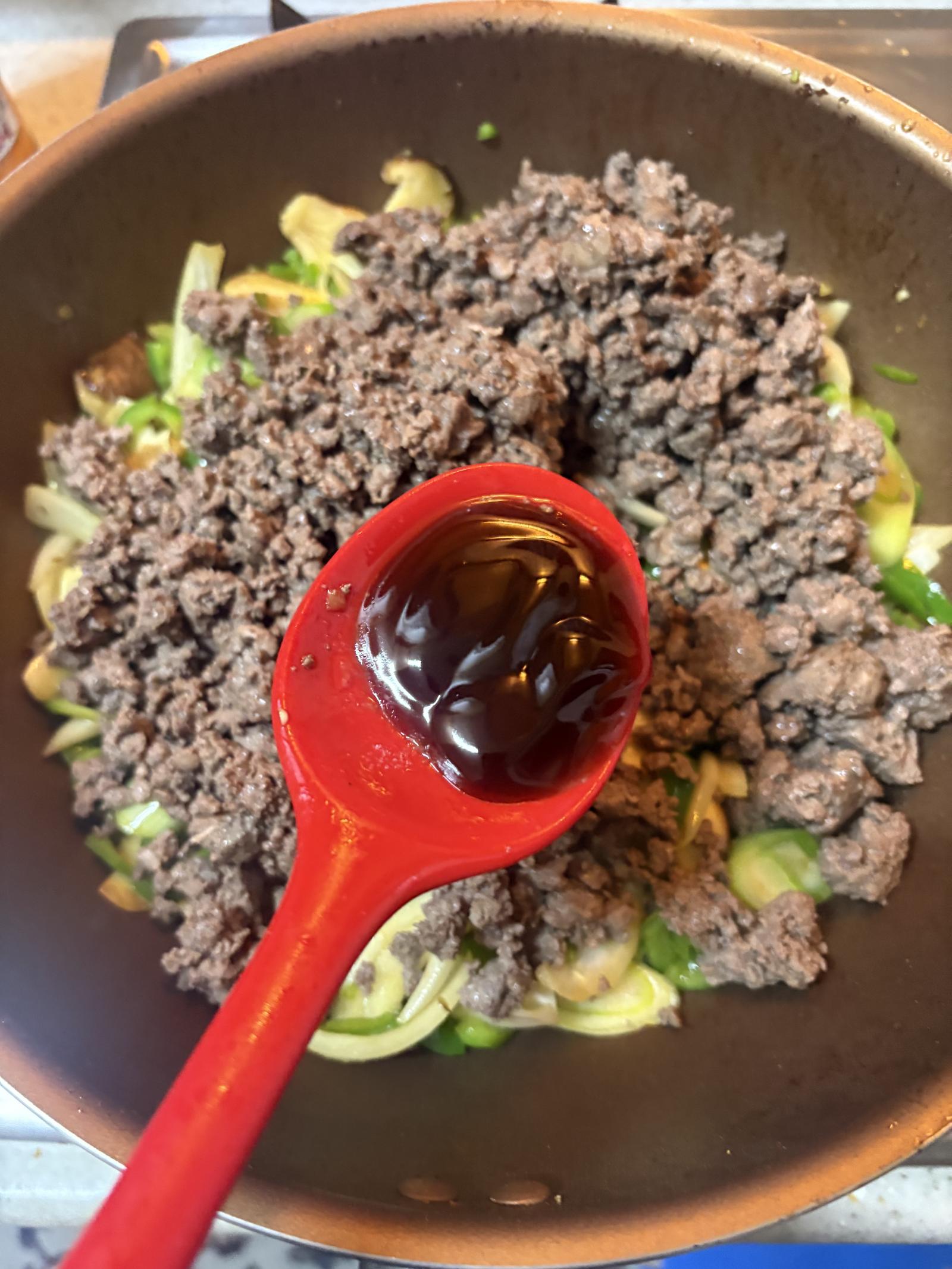 소고기가 많아서 굴소스 세큰술 넣어줬다