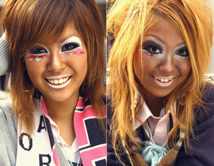 한동안 유행한 갸루화장한 중고생들의 찐하고 걸죽한 까무잡잡하고