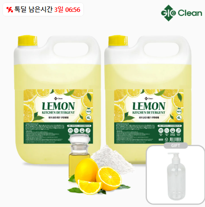 9,900원 지오클린 레몬 주방세제 4L 2개+공병1개 증정