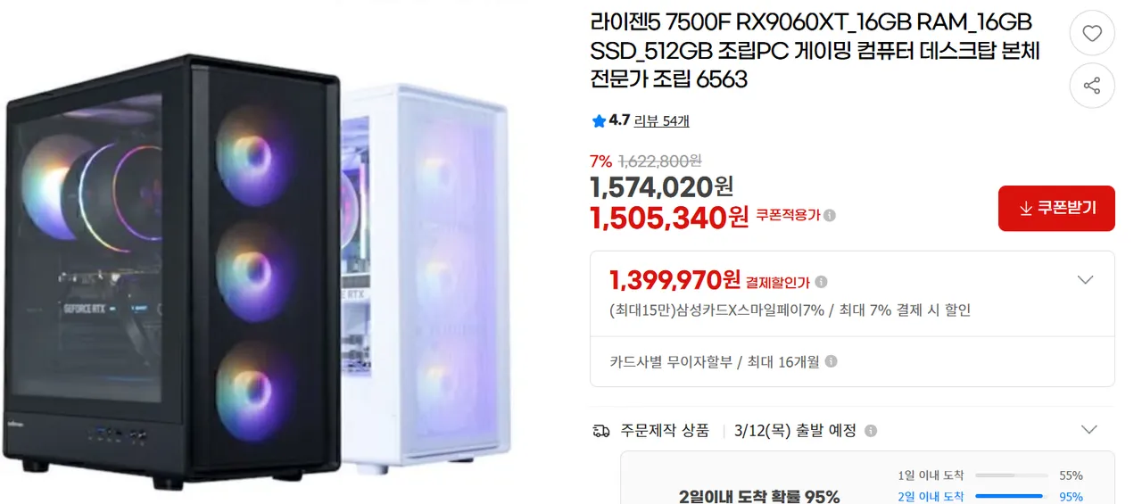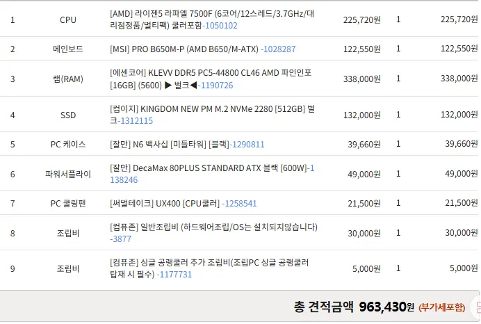 컴퓨존 기준으로 그래픽 빼고 구입하면